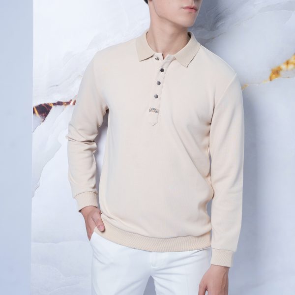 Áo thun trơn chất liệu nhập khẩu có cổ phối gân sọc tay áo dành cho nam.