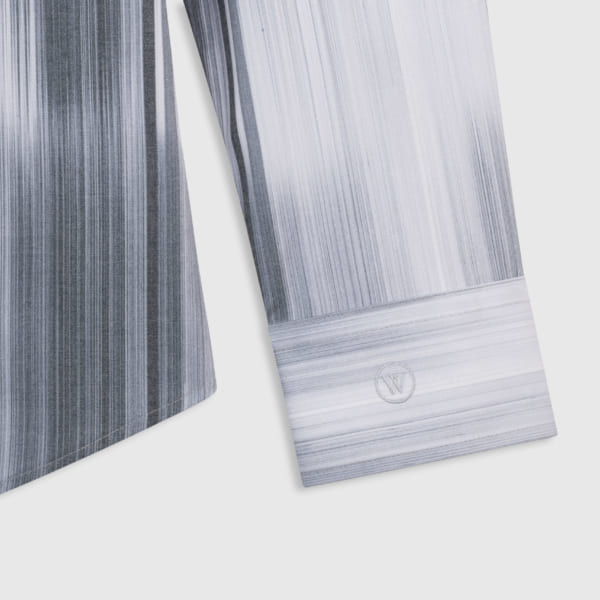 Sơ mi nam thiết kế màu ghi xước trắng, thêu chữ Wings ở cổ áo